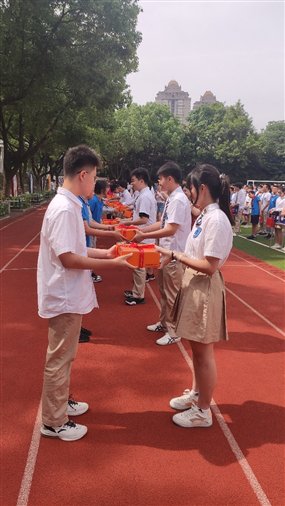 緊接著(zhe),初一(yī)年(nián)級同學走到(dào)初三學生(shēng♣"δ)中間(jiān),将自(zì)己親手寫下(xià)的(de)祝∑✘福和(hé)寓意著(zhe)“高(gāo)中”的(de)粽子(zǐ)香囊、綠(lǜ)豆糕送給學長(cháng↕≠♦★)學姐(jiě)們,并祝福他(tā)們,考上(shàng)自(zì)己理(lǐ)想的(de)高(gāo)中!