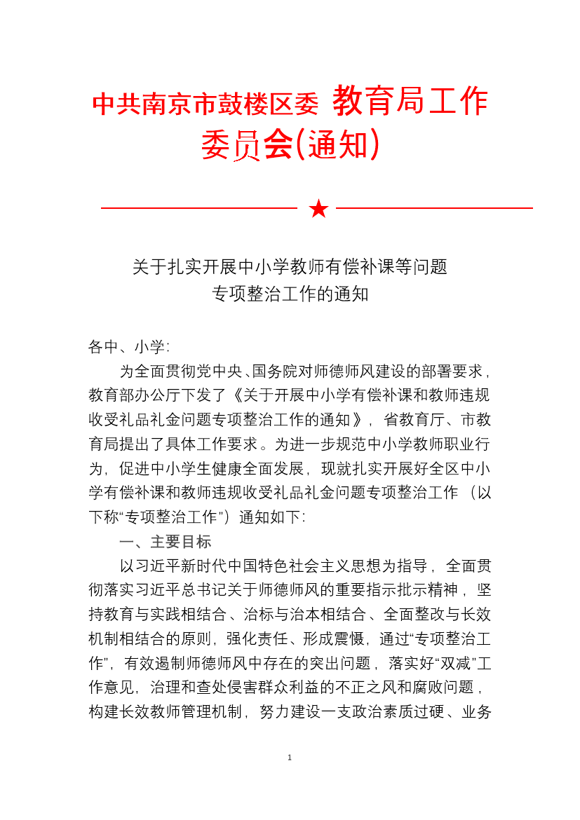 關于紮實開(kāi)展中小(xiǎo)學教師(shī)有(yǒu)償補課等問(wèn)題專項整 ♥‍€治工(gōng)作(zuò)的(de)通(tōn§ g)知(zhī)